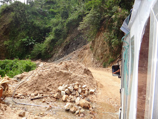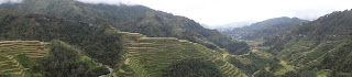 Il y a des fois ou tu te dis que t'es quand meme doublement chanceux! Je m'explique, premierement car tu as la chance de pouvoir visiter un lieu reculer de tout faisant partie du patrimoine mondial de l'UNESCO, les rizieres de Banaue! Splendide! Deuxiemement parce que justement tu as pu y aller et cela malgre des conditions de routes epouvantables! En effet comme nous l'avons deja explique dans un message precedent le nord de l'ile de Luzon subit comme chaque annee sa serie de typhons ce qui entraine des coupures d'electricite (depuis 2 semaines a Banaue), des glissements de terrain, des pluies diluviennes, des innondations et des aides humanitaires... Malgre ca les gens ici sont souriants, aimables et toujours soucieux de votre confort (souvent au detriment du leur). On etait quand meme un peu mal a l'aise mais comme on nous l'a dit, ici tout ca c'est normal et on fait avec! Du coups on a pas pu s'empecher de rigoler en imaginant l'emeute que cree une cave innondee par 10cm d'eau chez nous...