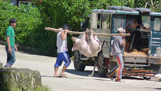Nous voila arriver dans le petit village de Sagada, village situe dans la cordillere des Philippines. Village un peu mort car hors saion mais tres joli et "chill" comme l'avait dit l'ami Thibault. Ce petit bled est repute pour ses cercueils, ca parait glauque mais c'est un fait tres impressionant car les cercueils sont niches dans des falaises de calcaire. En effet la tradition voulait que lorsque quelqu'un decedait on le perchait dans une grotte ou une falaise environnant le village. De nos jours ceci est encore possible en echange de 20 porcs et 60 poulets! Autant dire qu'il faut etre aise...