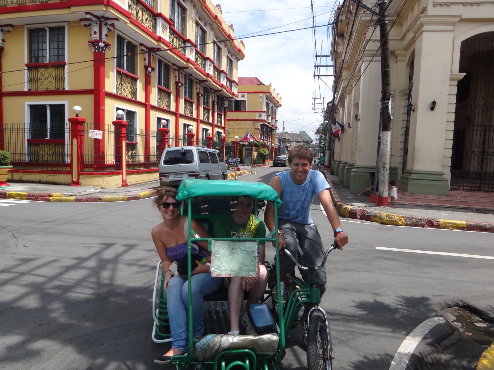 En effet parti de Melbourne dans la matinee, la journee est vite devenue eprouvante en effet beaucoup de retard dans les vols (Gui nous a attendu plus de 4h a Manille) et avec un resultat merveilleux, LA PERTE DE NOS SACS! Voila ca c'est fait!!! On a passe les 2jours suivants a Manille chose que nous voulions eviter car c'est vraiment pas la ville la plus sympatique pour les touristes, tout le monde essaye de t'enfler! Le bonheur! On en a quand meme profiter pour visiter Intramuros, un vieux fort espagnol entoure de muraille sur un tricycle. Avec un gentil chauffeur qui l'etait moins au moment de payer! Surprise! ;-)