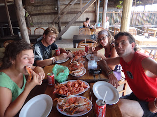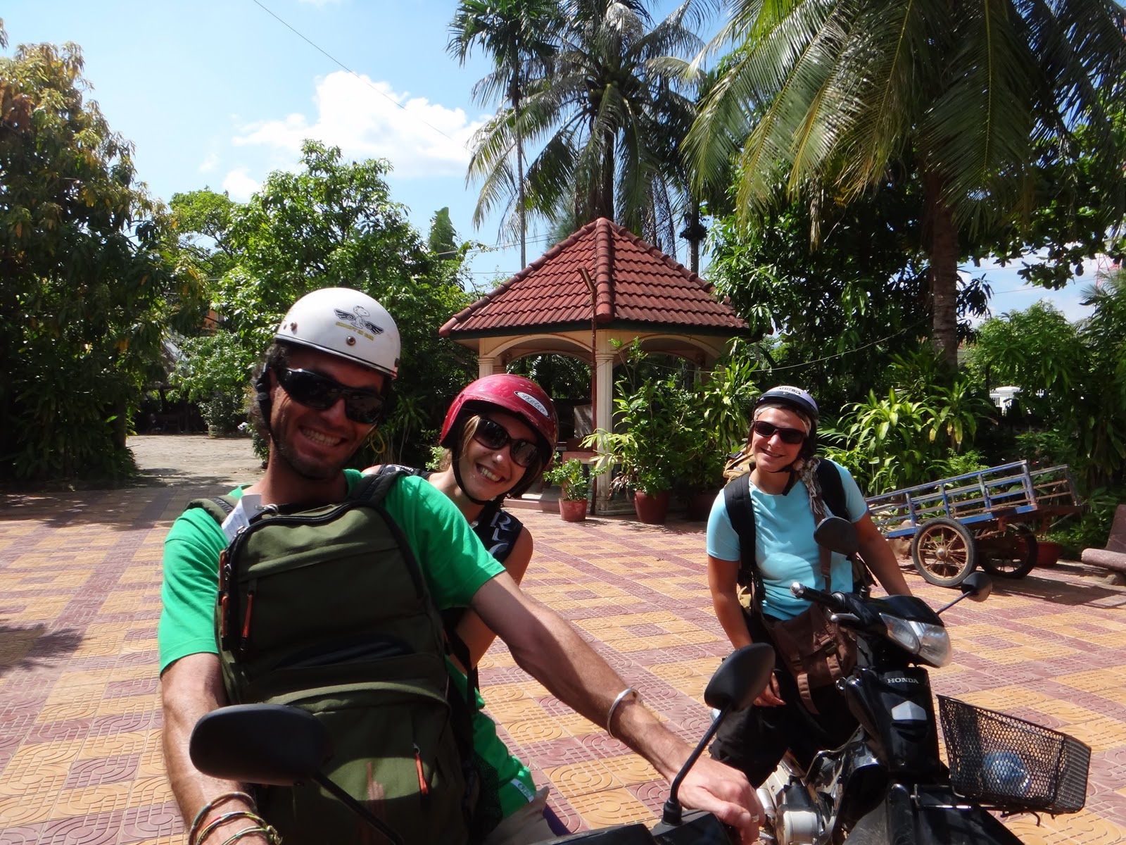 Nous debarquons donc a Sihanoukville,en compagnie de Yam et Alizee un couple venant des 2 Alpes en France avec qui nous sympatisons rapidement. Ils nous proposent de partager le tricycle jusqu'a leur guest house qui deviendra par la suite le notre egalement. Cette ville cotiere devient depuis quelques annees tres touristique. Beaucoup de logements ici sont tenu par des expatrie francais ou autres europeens. Ici on est moins depayse, on boit du pastis, on parle francais et on joue a la petanque!!! Nous logeons chez Isa un francaise debarquee ici il y a environ 3ans. Le moins que l'on puisse dire c'est qu'ici on est vite a l'aise et l'ambiance est a la cool! :-)