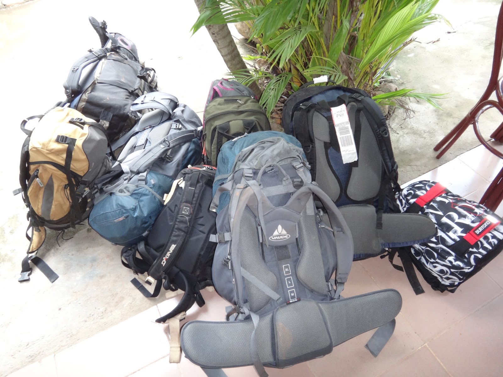 On nous a demander ce qu'on pouvait bien trimballer dans notre "maison portable" pour 6mois. Voila une petite liste a prendre comme info si ca vous interesse. On en a pour 35kilos en tout! Aie pas toujours facile!!! ;-)