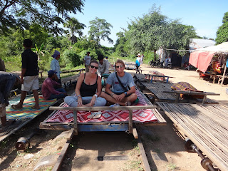 Decouverte de Battambang et ses environs. Nous avons comme d'hab' un peu flaner en ville mais avons aussi vecu une experience de fou: le "BAMBOO TRAIN". Sorte de petit chariot roulant a toute vitesse sur les voies de train desaffectees. Vu qu'il n'y a qu'une seule voie, t'es sans arret en train de demonte ton wagonnet pour laisser passer les autres. La regle est simple, le moins charger, decharge! Magique! D'autant plus qu'un chemin nous nous sommes arreter dans un petit boui-boui ou nous avons ete accueilli par toute une famille, les petits garcons ont fabrique des bagues a Noemie et le grand-pere a raconte sa vie et l'histoire de son pays a Sven. Tres interessant, des souvenirs incroyables!