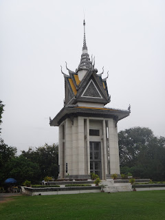 Triste visite pour nous ajourd'hui... Si le Cambodge semble etre un pays souriant et sans soucis ceci n'a pas toujours ete le cas... On parle souvent des genocides nazis, rwandais ou armeniens mais peu ou pas de celui ayant eu lieu ici de 1974 a 1979. En effet suite a l'arrivee au pouvoir de Pol Pot, le dirigeant du parti communiste, le Cambodge sombre dans un regime communiste tres stricte et paranoique. On detruit les ecoles, les lieux de cultes, les banques, on dynamite les statues de boudah,..Les gens fortunes, les intellectuels, les personnes vivants en ville sont deportes ou forces a la migration par Pol Pot et les Khmers rouges.